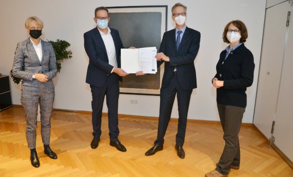 (v.l.): Regierungspräsidentin Dorothee Feller, Hauptdezernent Andreas Grotendorst, Regierungsvizepräsident Dr. Ansgar Scheipers und Personalhauptdezernentin Christiane Wienströer. © Bezirksregierung Münster