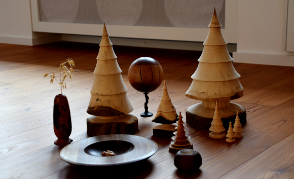 Aktuell erfüllt der Hobbydrechsler wieder einen Wunsch seiner Gattin und stellt Tannenbäume her. Große und kleine, dicke und dünne. Dabei scheut er an der Werkbank auch keine filigranen Arbeiten und zeigt auf ein ganzes Tablett voller Kleinigkeiten, die zwischen 5 und 20cm groß sind. Diese verschenkt Kristina Tillmann-Kreis als „Give away“ zur Weihnachtszeit in ihrem Pilatesstudio.