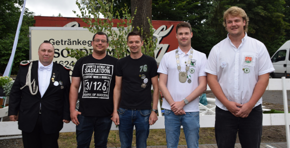 Die Insignien sicherten sich: Julius Fischer (Kopf), Jens Hindricksen (Krone), Christian Herzig (Reichsapfel), Peer Holtmann (Zepter), Philipp Nuyken (linker Flügel, Pascal Lubnau (rechter Flügel).