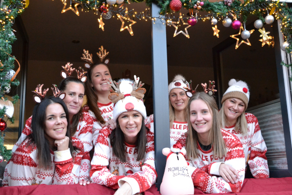 Lautstark wie immer präsentierten sich die „Promille Perlen“ vor ihrem geschmückten Fenster. Der Kegelclub, bestehend aus zehn Damen, bot, wie der Name schon verriet, promillehaltige Getränke an. Einheitlich gekleidet brachten sie ihre Getränke an die Besucher*innen. Für das Trinkgeld im Promilleschwein bedankten sie sich lautstark und mit Schellengeläut.